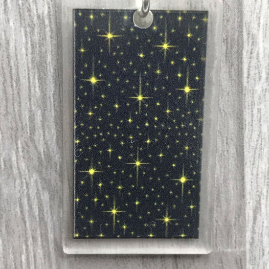 These cute little tarot cards are encased between plastic plates, measuring about 1 inch wide by 1 1/3 inch tall. They hang on 20 inch silver-colored chains.